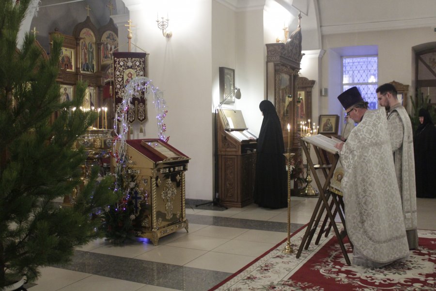 Утром 6 января 2026 года, в Навечерие Рождества Христова (Рождественский сочельник), в Троицком женском монастыре совершалось богослужение с чтением Царских часов* и Божественная литургия святителя Василия Великого.