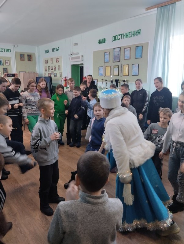 А для более младшего возраста Дед Мороз и Снеурочка устроили праздничное представление с песнями, танцами и подвижными играми.