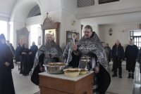 В пятницу после Литургии Преждеосвященных Даров по заамвонной молитве согласно древней традиции Православной Церкви, было служилось молебное пение великомученику Феодору Тирону с освящением колива***. Затем освященное коливо раздавалось прихожанам.