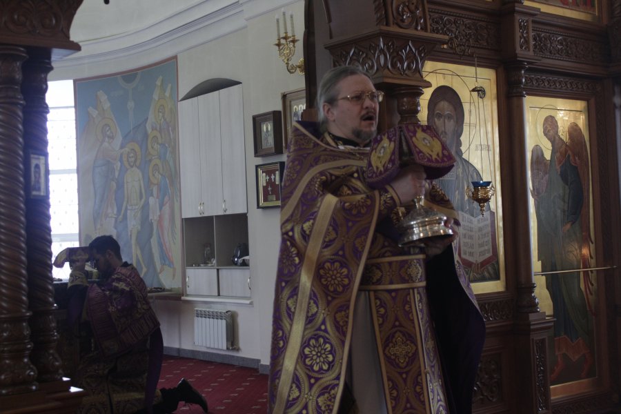 В среду и пятницу после уставного последования утрени, часов и изобразительных служилась Литургия Преждеосвященных Даров** – первые в этом году.