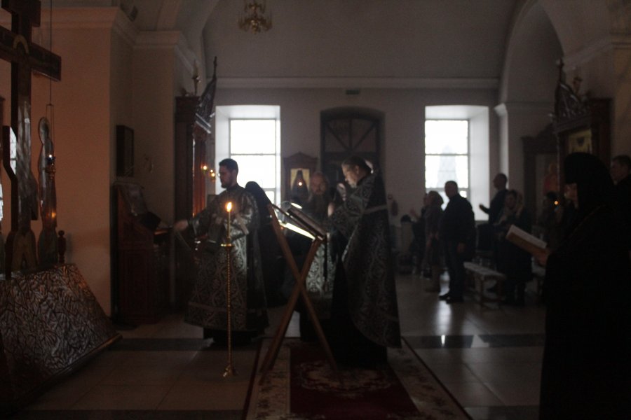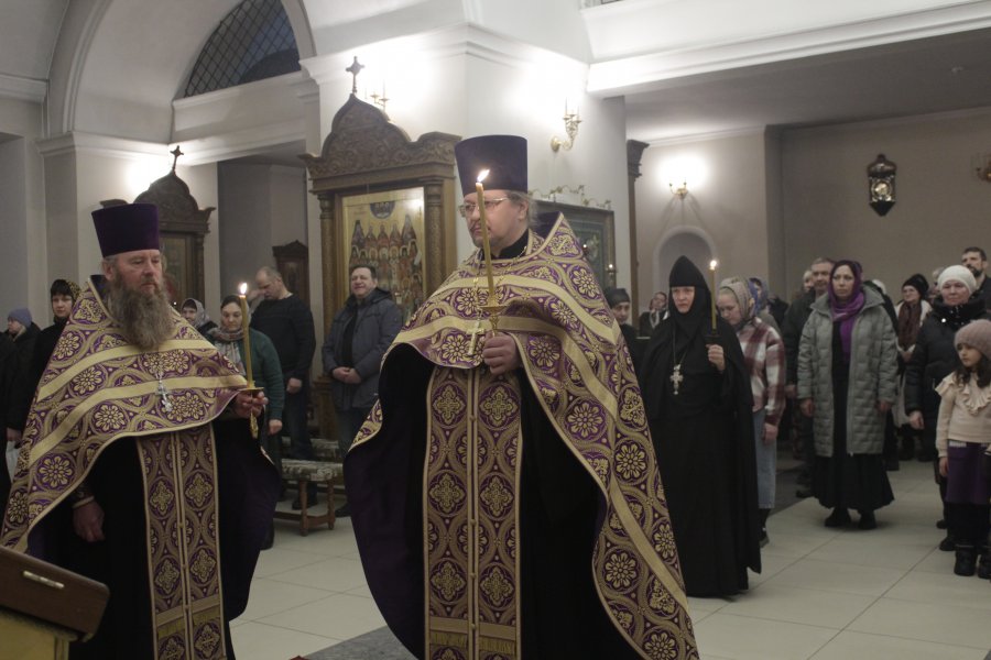 С понедельника по четверг за вечерним богослужением читалось Великое повечерие с чтением Великого покаянного канона преподобного Андрея Критского по частям*.