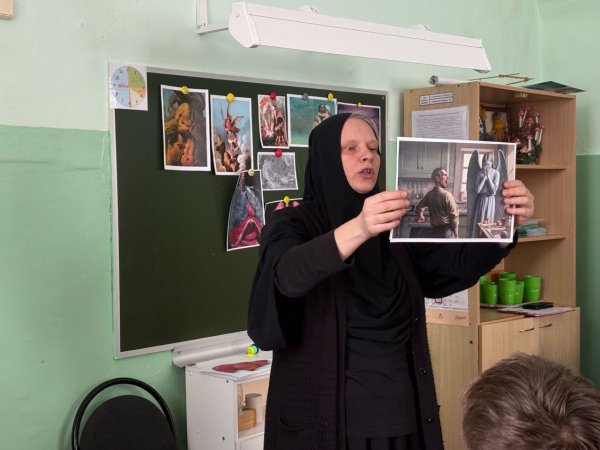22 января 2026г. воспитанники и преподаватели нашей воскесной школы побывали в гостях в ГКОУ "Головинщинская школа-интернат". Директор воскресной школы инокиня Магдалина провела интерактивное занятие со старшими воспитанниками школы-интерната о сотворении мира, о первородном грехе и его последствиях, таких, как зависимость от телефона, курение, употребление алкоголя, наркотических веществ. Беседа получилась интересной и оживленной, подростки задавали вопросы, сами активно отвечали.